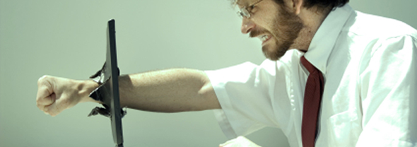 Taper sur son ordi ne sert à rien, ça sera surement pire suivant votre force… 😛