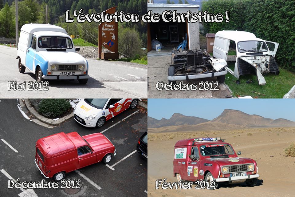 La première fois que nous avions entendu parler de cette course, cela devait être en décembre 2011. Quelques temps après, nous commencions la recherche d'une 4L. Nous avions choisi de rechercher uniquement des fourgonnettes. Celles-ci pouvant transporter plus de matériel et parce qu'aussi nous les préférions aux berlines. Après quelques mois de recherche, nous trouvions enfin une F4 (« fourgonnette courte ») qui nous convenait et qui deviendra par la suite Christine 🙂.
