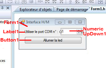 On va commencer par la sélection du port de communication (port COM). Pour cela, double cliquez sur le « numericUpDown1 » pour créer la fonction « numericUpDown1_ValueChanged() » dans le fichier form.h.